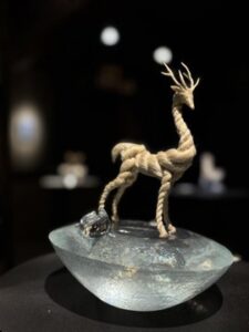 これまで、水の精霊をカタチにしたいと願い、透明な素材で彫刻を創り続けてきました。本展は、新たな素材「精麻」を用いて、風の精霊を表現する作品に挑戦しています。