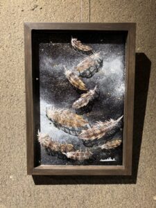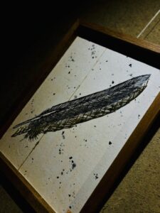 ▲羽の切り絵をツールとして、風というエレメントのもつ表情を表現した作品。