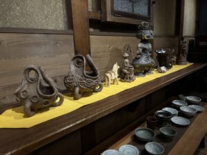 ▲メグミ納陶さんの縄文式土器と土偶作品。人間の肢体を忠実に取り入れ表現した「遮光器式土偶レディ」シリーズはとてもミステリアスかつセクシーな造形で、自由を楽しむ現代の土偶です。
