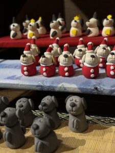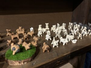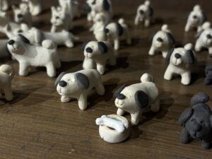 ▲犬をモチーフにした陶器作品。箸置きから手のひらサイズの置物まで、日常生活に取り入れやすいかわいいわんちゃんの作品がたくさんです。