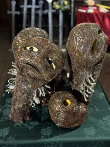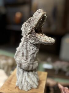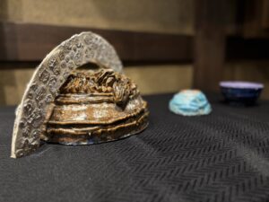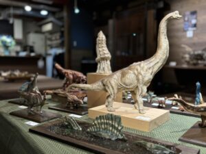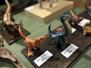 ▲恐竜をモチーフにした立体造形作品。陶や石塑粘土で出来た恐竜は、骨格、筋肉、樹皮、恐竜の表情までもが精密に作られており、作陶から焼成、絵付までの凄まじく丁寧な手仕事を感じる事ができます。