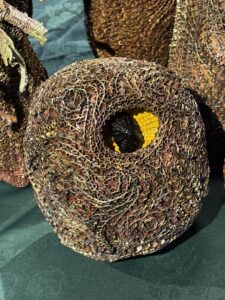 ▲流木を用いたGenkyさんの立体作品。自然に造形された流木を糸を中心とした素材で繋ぎとめ造形した作品はとても凛然としており、ポジティブで精悍な意思を感じます。素材の流木はご自身で収集、下処理もされています。