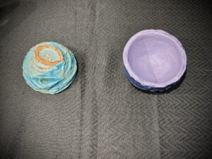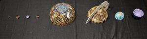 ▲天体をモチーフにした陶芸作品。今回はオブジェと器、造形性と機能性、両方の機能を兼ね備えた意欲作品です。器の大きさは各天体の大きさの比率に比例しています。