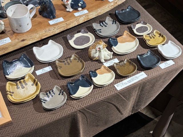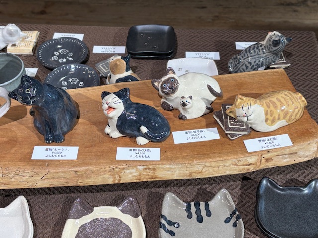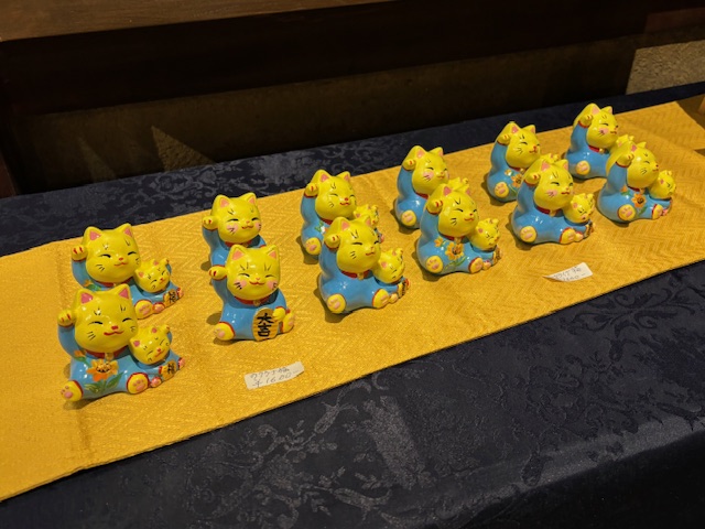 置物「あくび猫」(ハチワレ)(写真向かって中左)
