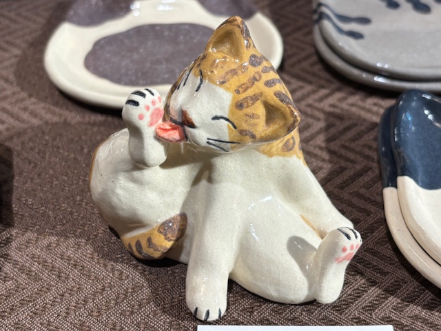 置物「毛づくろい猫」(写真向かって右)